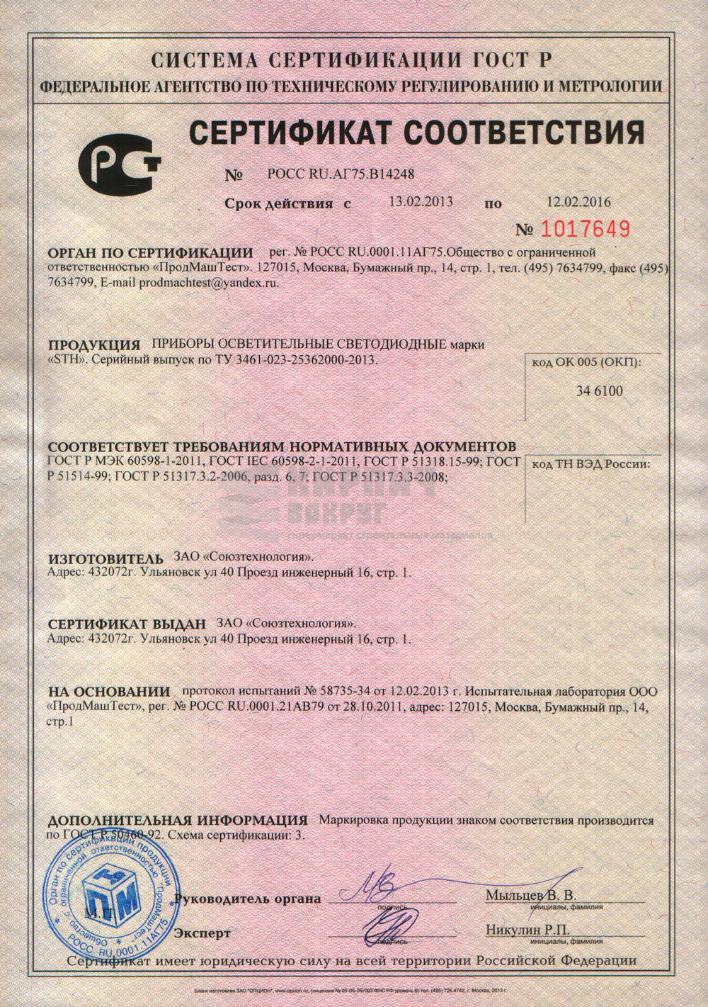 Производитель | СОЮЗТЕХНОЛОГИЯ |
