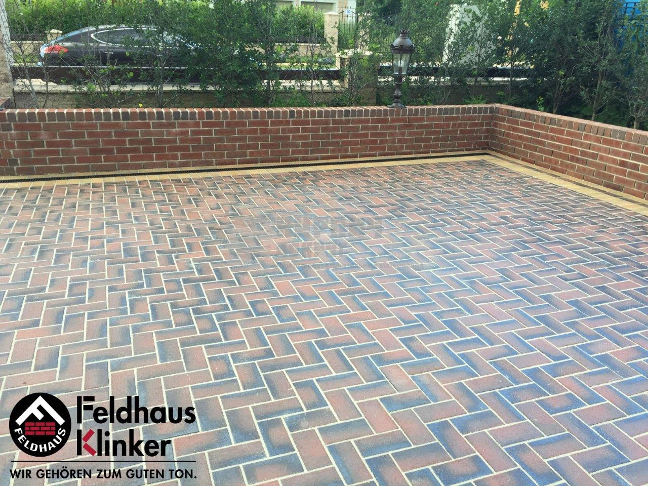 Немецкий тротуарный клинкерный кирпич Feldhaus Klinker артикул 408 gala nero (состаренный обожженный красный с темным нагаром). На протяжении двух последних сезонов этот благородный и выразительный цвет является безусловным лидером продаж по товарной группе «Тротуарный клинкер» в элитном сегменте. Выпускается в форматах 200*100 мм, в толщинах 45 и 52 мм.